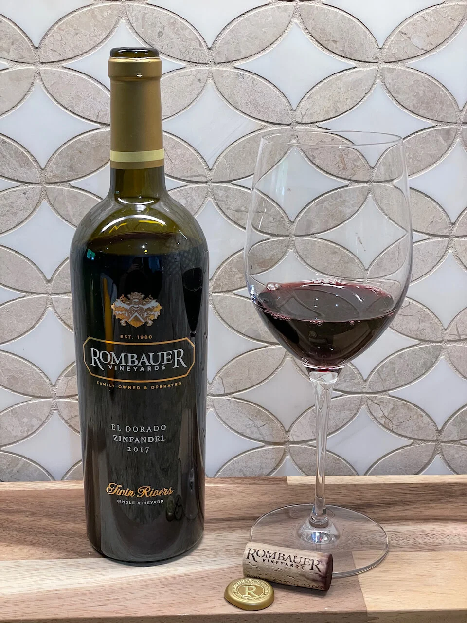2017 Rombauer El Dorado “Twin Rivers” Zinfandel ($42)   Rombauer’s El Dorado (“the golden”) Vineyard is located 1,650 feet above sea level in the Sierra Foothills of El Dorado County, California. Its sandy soils, high elevation, and warm days and c