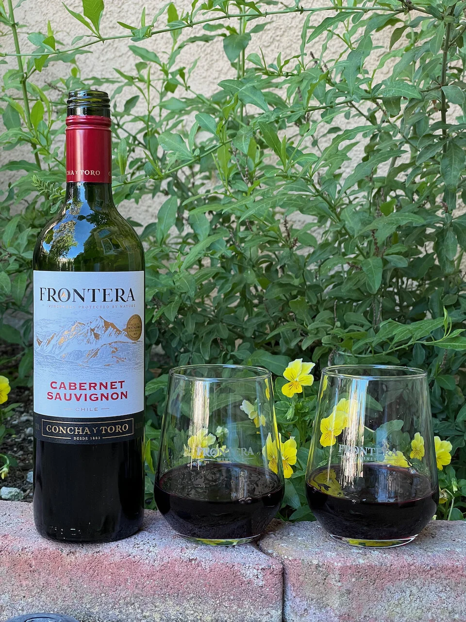 Frontera Cabernet Sauvignon ($6.99)   The Frontera variatal brand from Concha Y Toro has a newly designed label featuring the iconic Andes Mountain range for their well-known wine.   This non-vintage (NV) Cabernet Sauvignon is from Chile’s Central